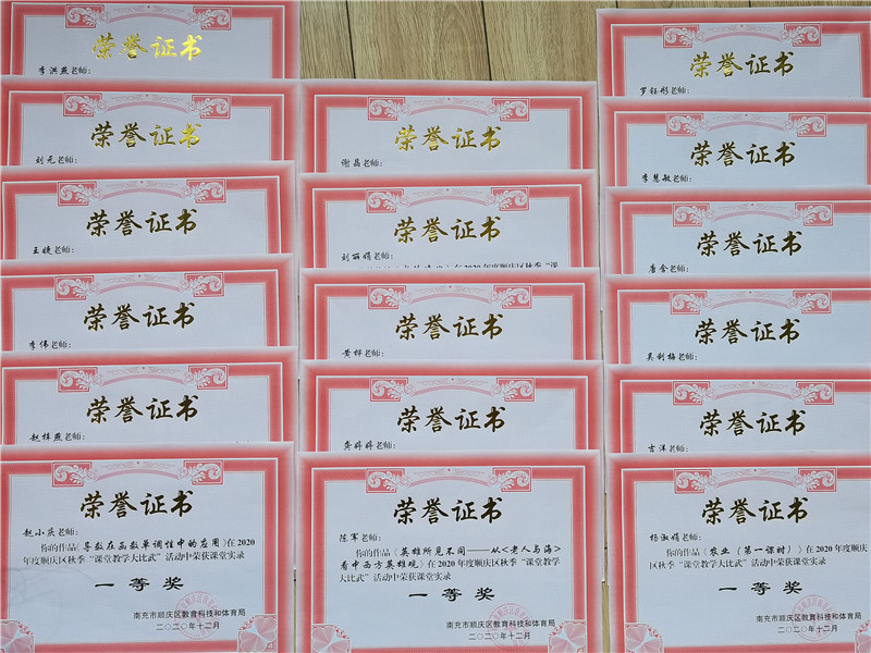 ——热烈祝贺南充一中40位教师在 “2020年度南充市顺庆区秋季课堂教学大比武”活动中斩获佳绩