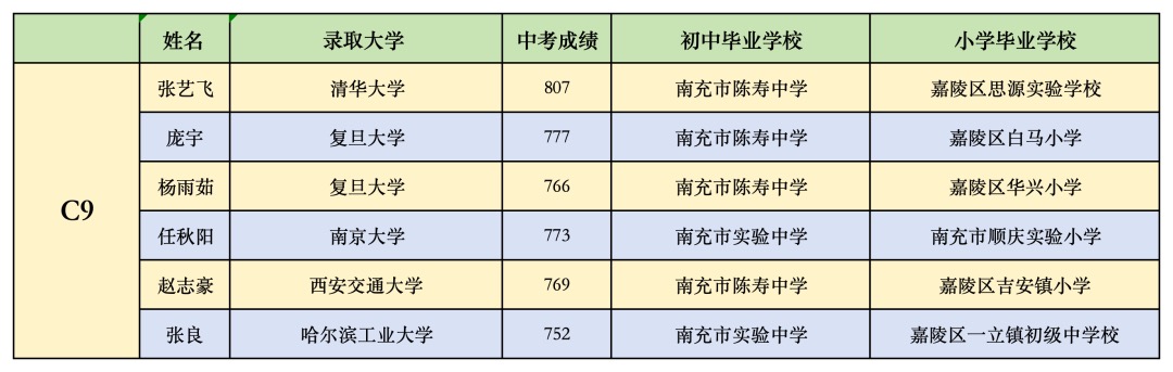 共有 6 名学子成功跻身 C9 院校。