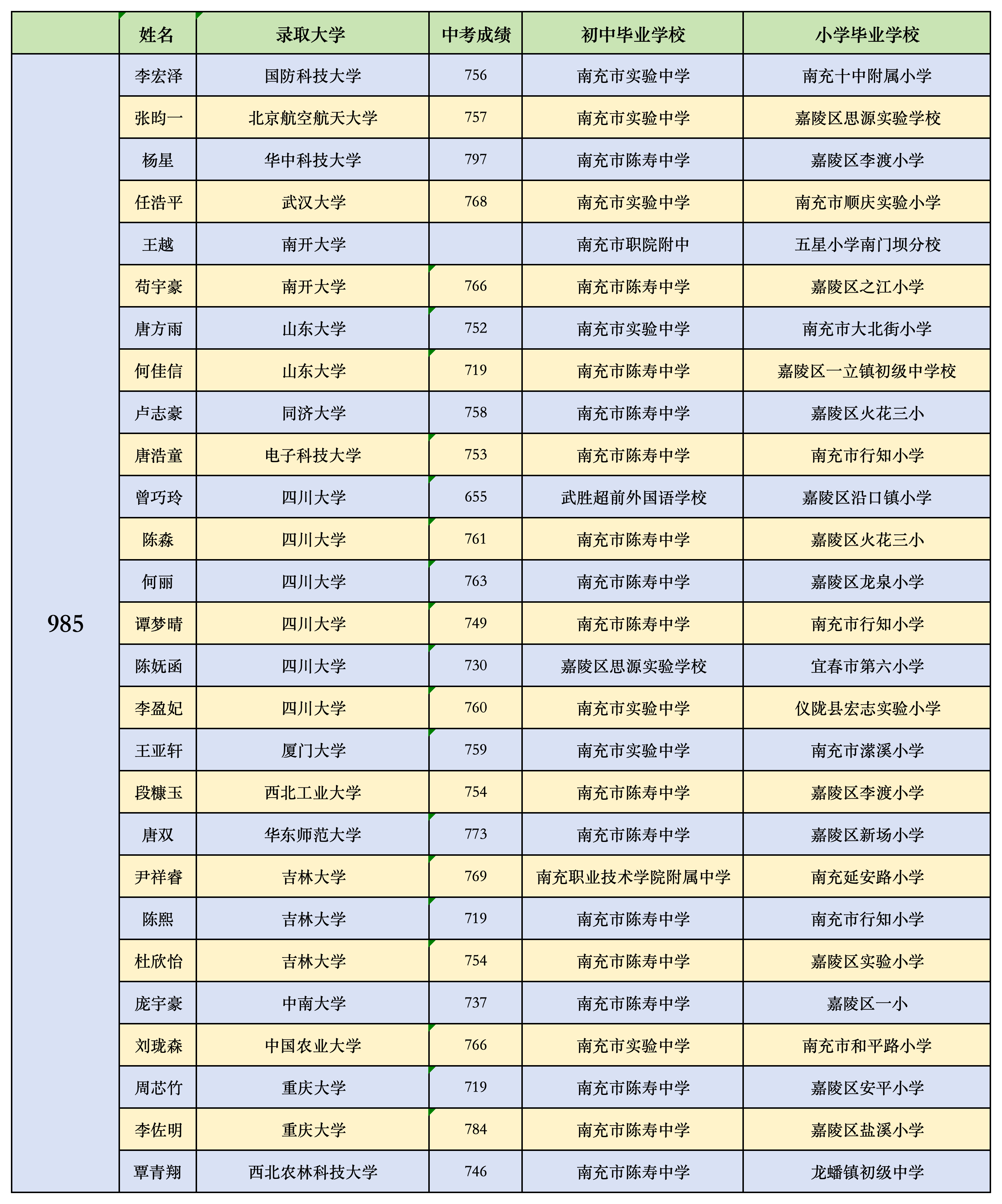 共有 33名学子成功突围,考入 985 院校,以 11.45% 的985录取率交出了一份亮眼答卷。